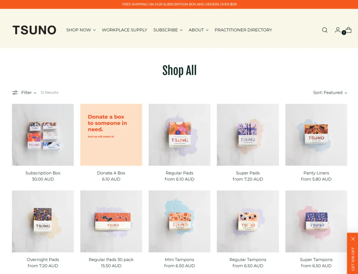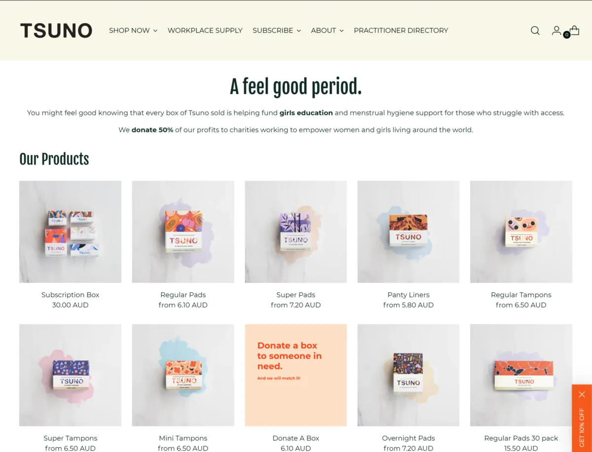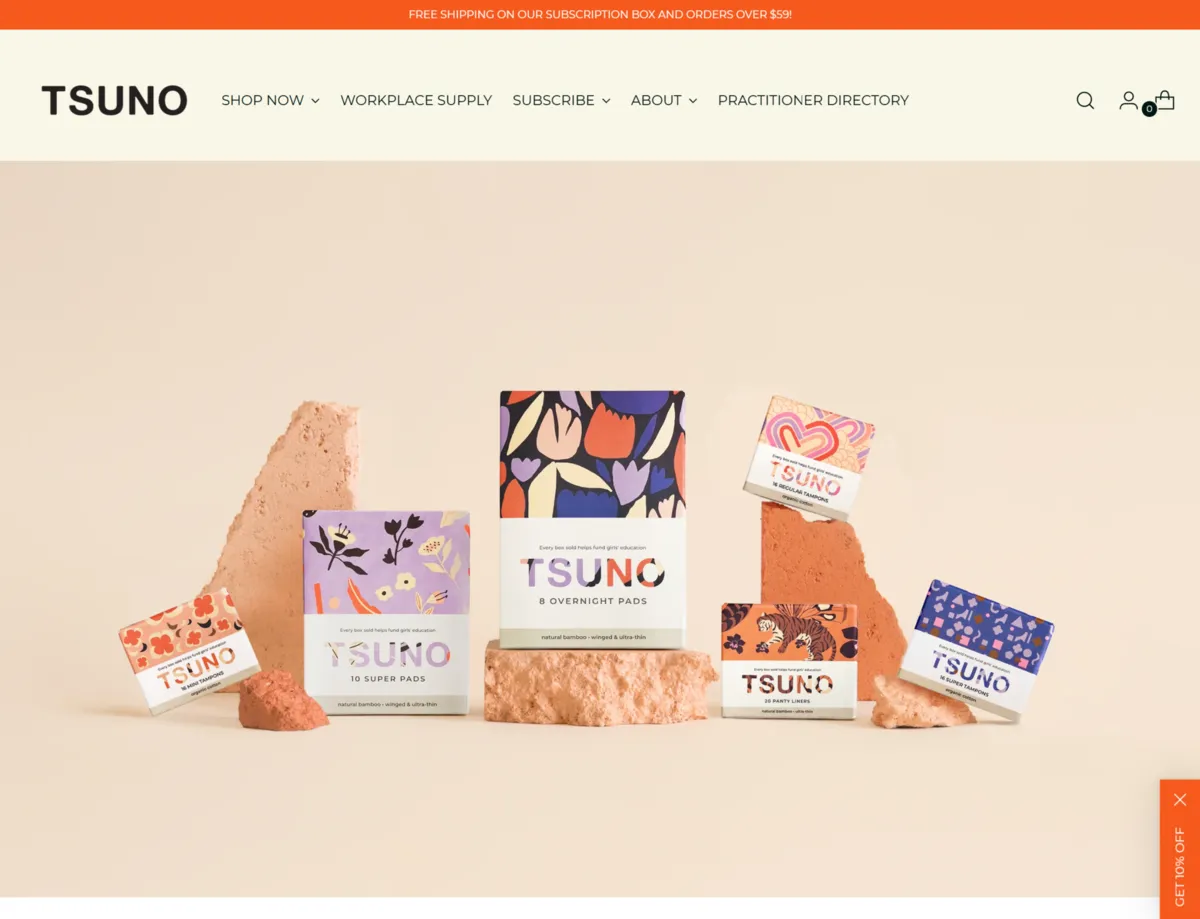 Tsuno creates sustainable and eco-friendly period products, including bamboo and organic cotton pads and tampons, while donating 50% of their profits to charities that empower women. They’re committed to providing comfortable, high-quality products that are good for both people and the planet.